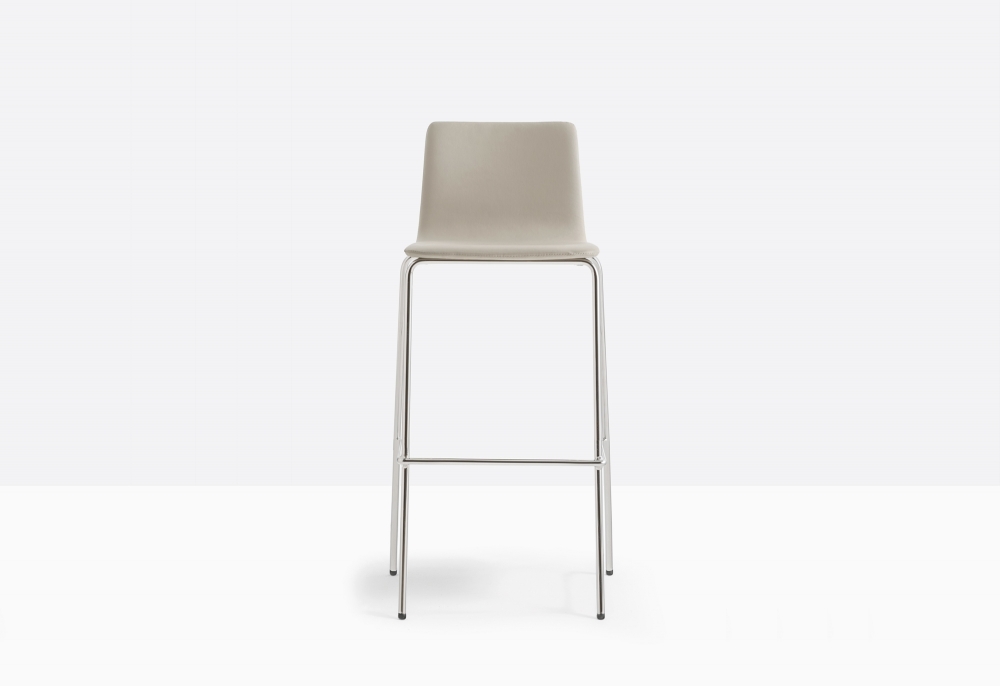 Inga name pays tribute to the Northern European female elegance. Barstool with upholstered shell covered in fabric or simil-leather and steel tube frame Ø 16 mm. Seat height 780 mm.