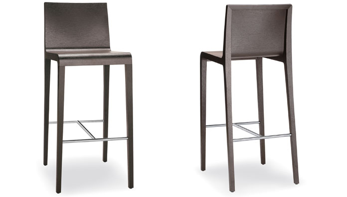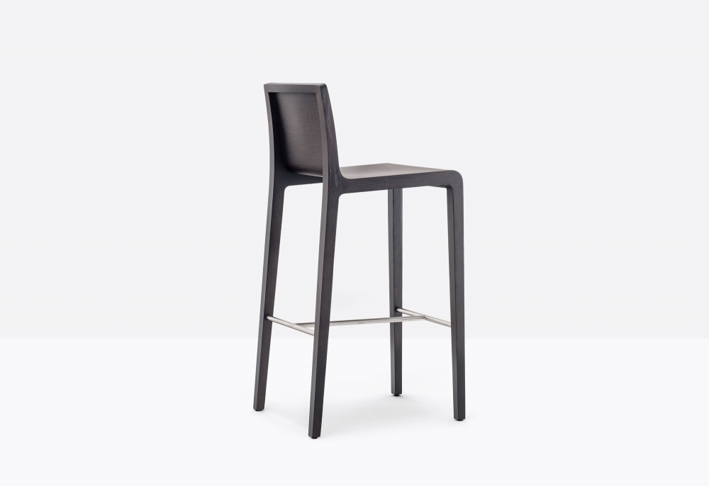 Young collection is designed to be light but at the same time solid and resistant. Barstool with curved plywood shell, solid oak frame and stainless steel tube footrest. Seat height 750 mm.