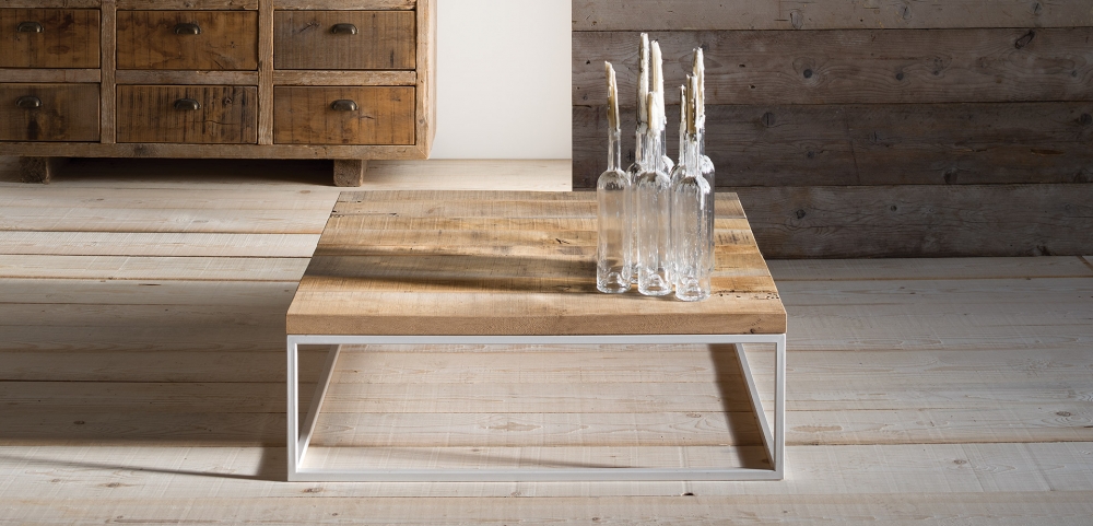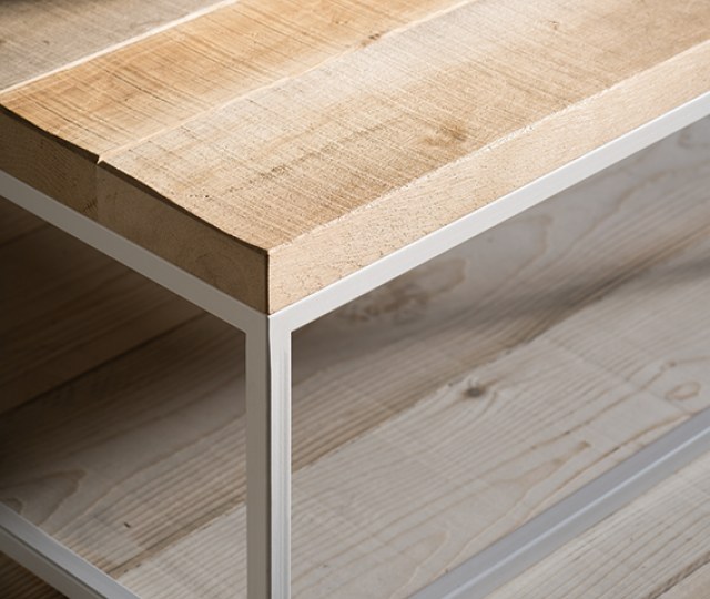 Milo coffee table with wooden top (in a variety of woods) and metal structure